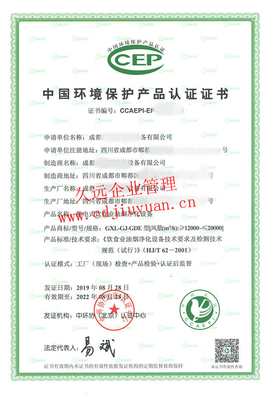 中國環(huán)境保護產品認證證書